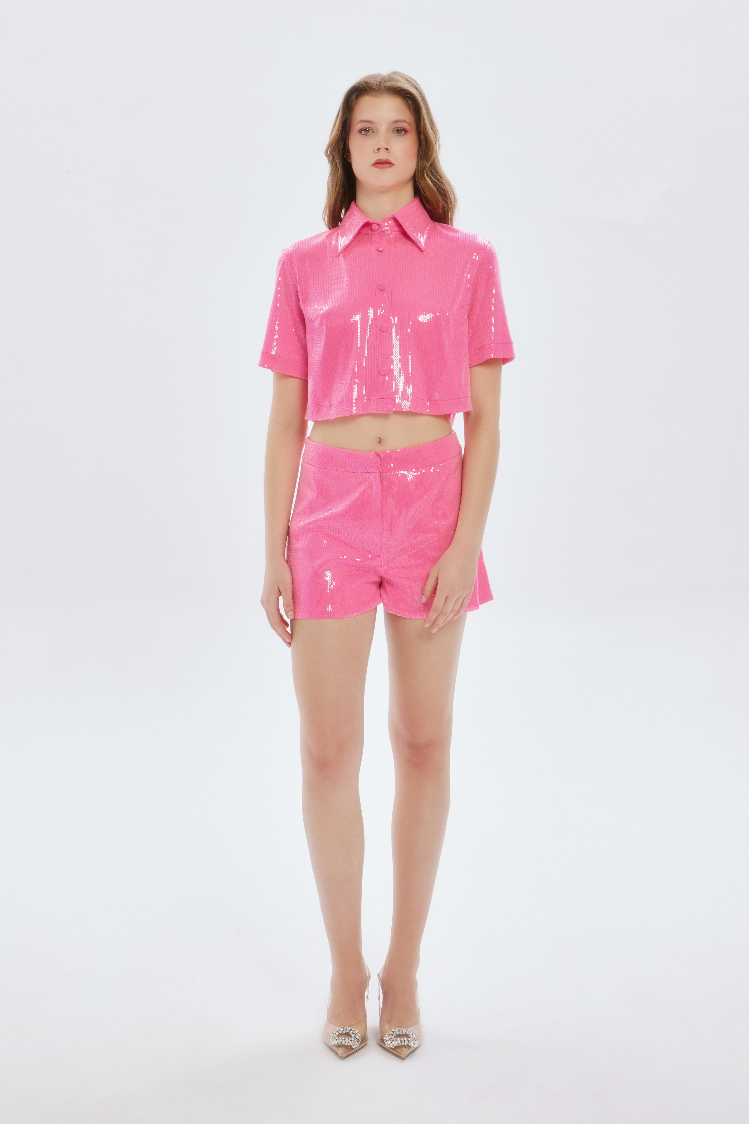 Kai Pembe Payetli Mini Şort ile parlayın, stilinizi konuşturun!✨