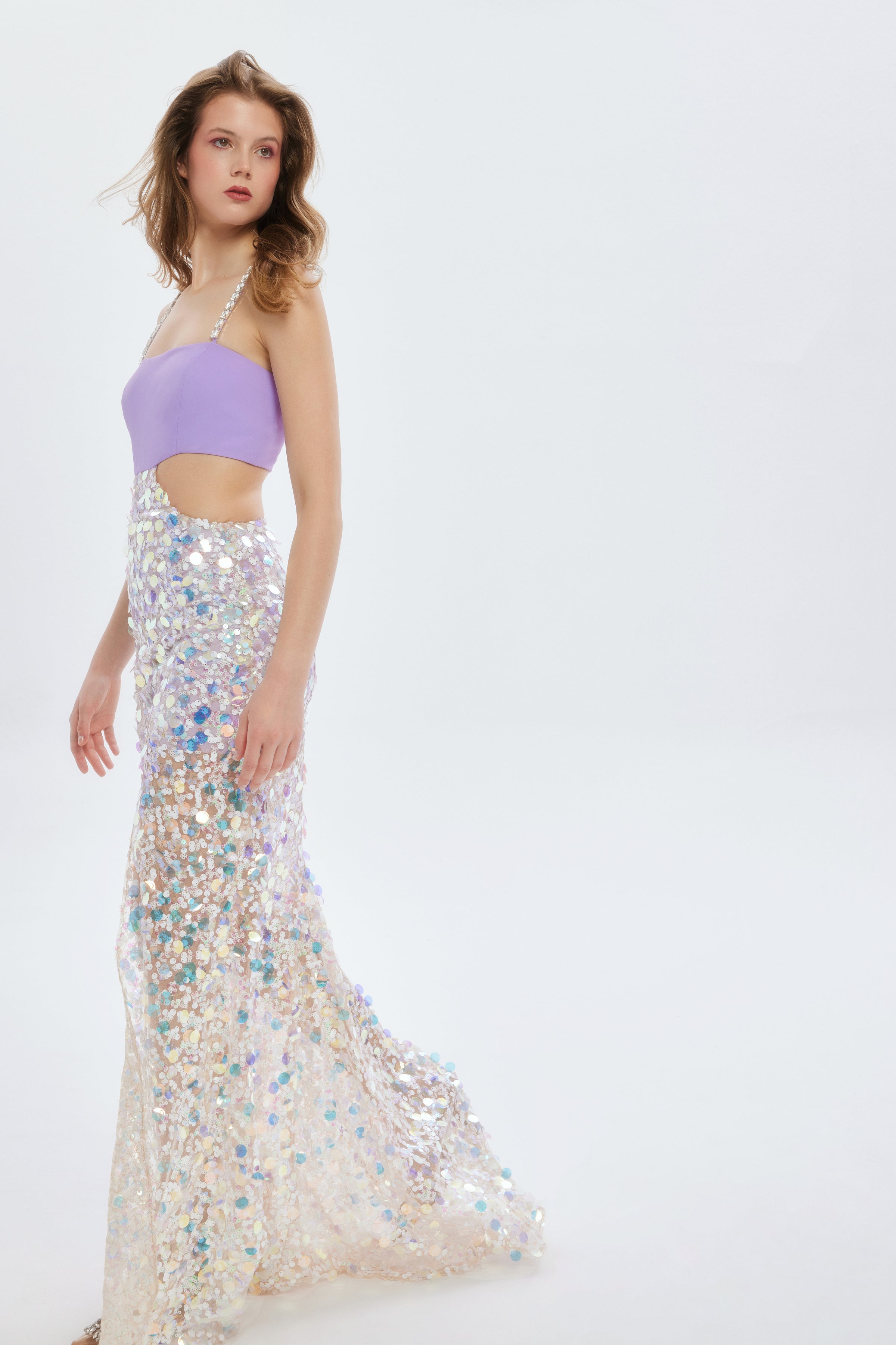 Ariel Payetli Yırtmaçlı Uzun Elbise, mitolojinin büyülü dünyasını modern tasarımla buluşturuyor.