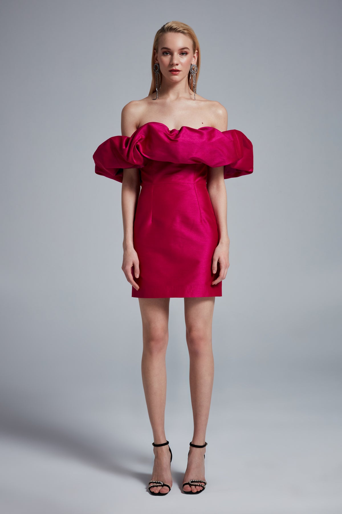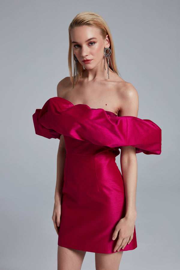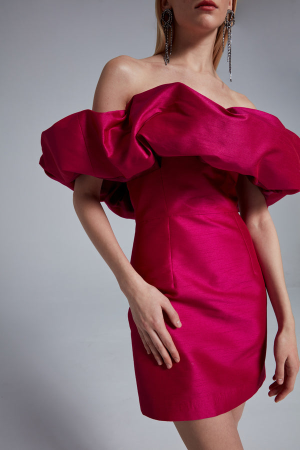 Şantuk Kumaş Yaka Detaylı İpek Saten Astarlı Mini Elbise