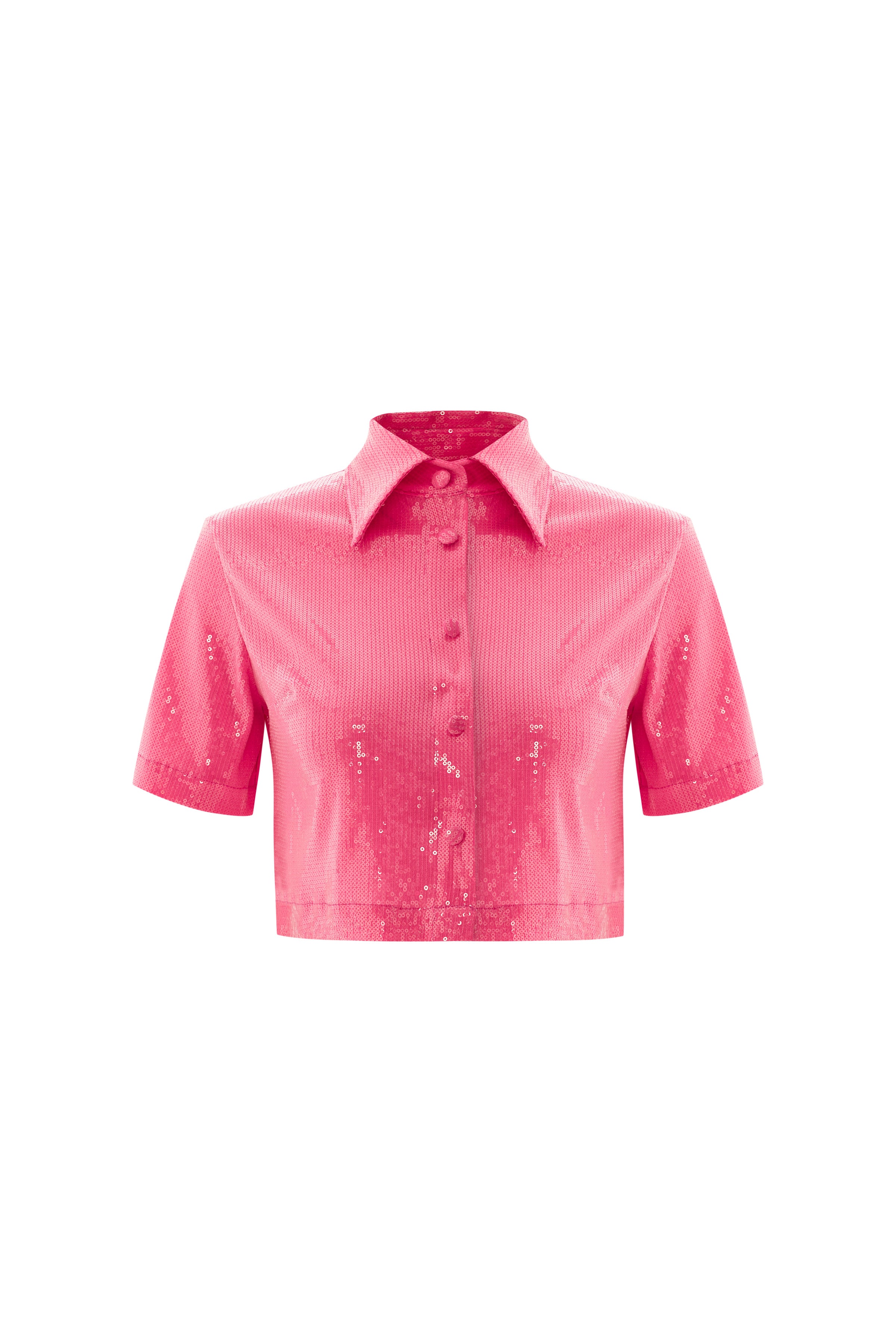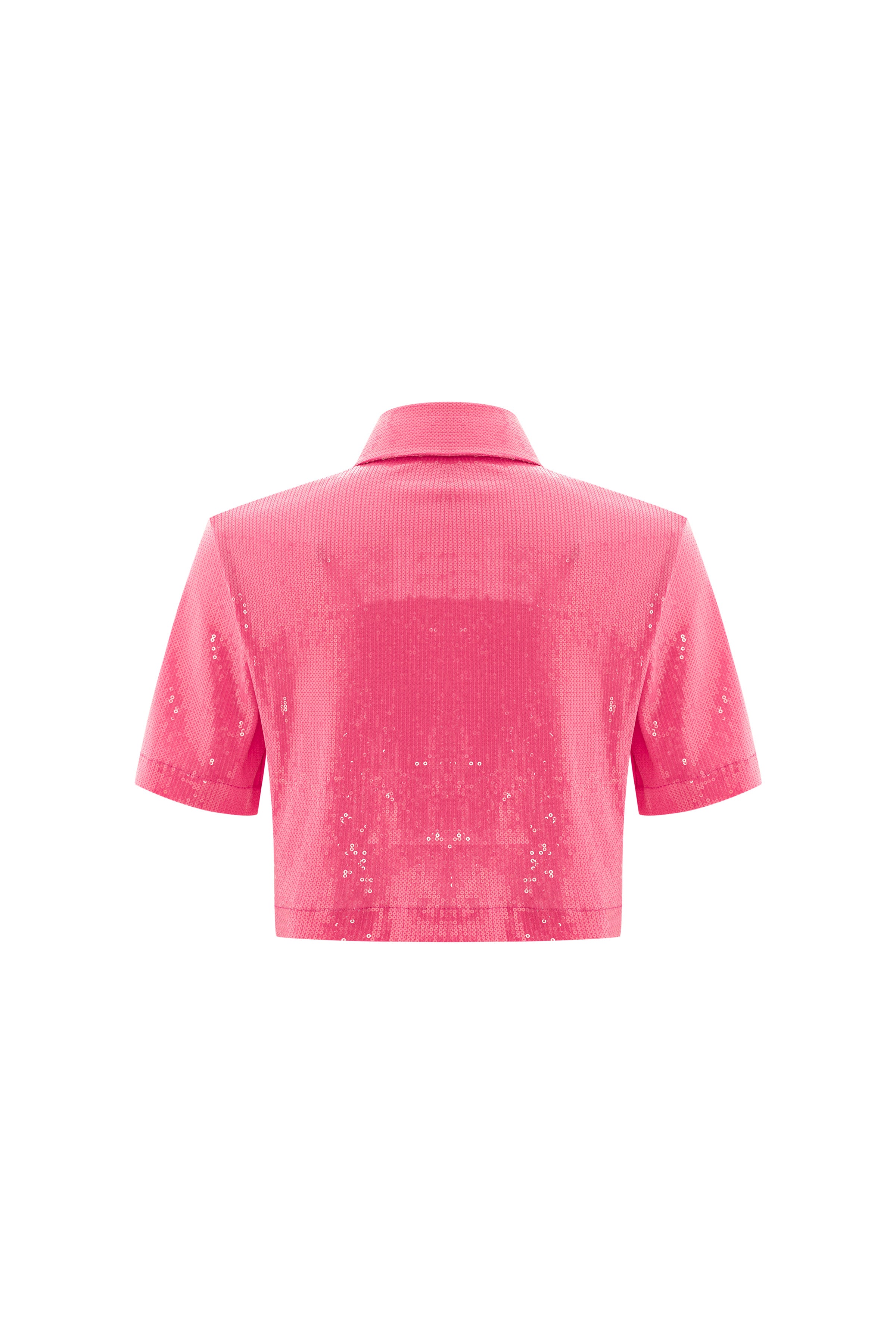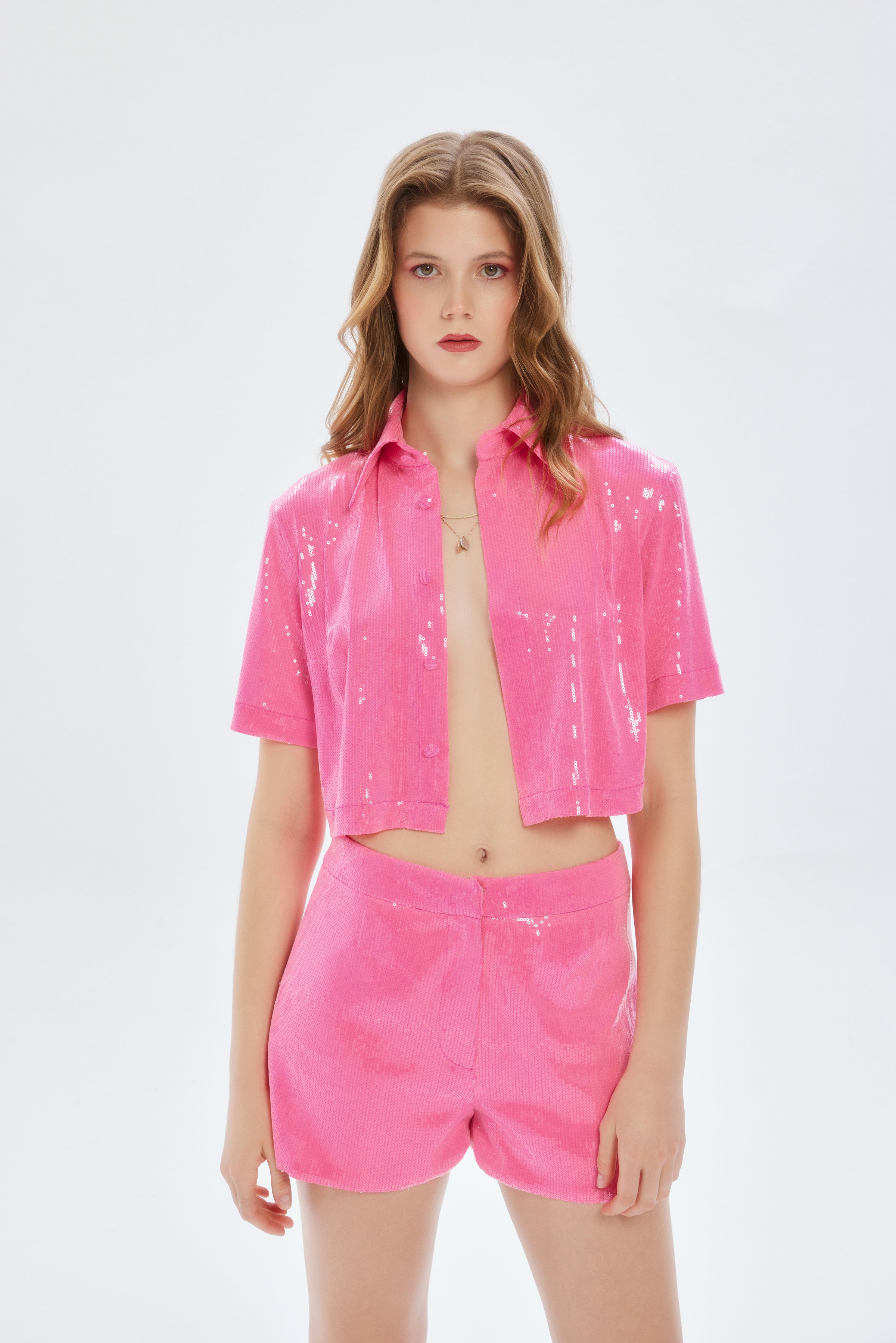 Kai Pembe Payetli Crop Gömlek ile her ortamda parlayın!✨