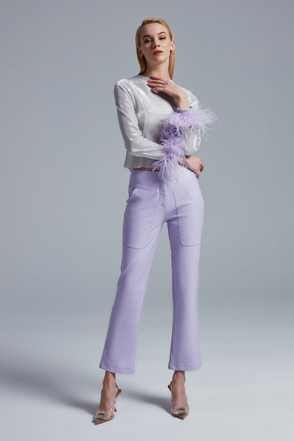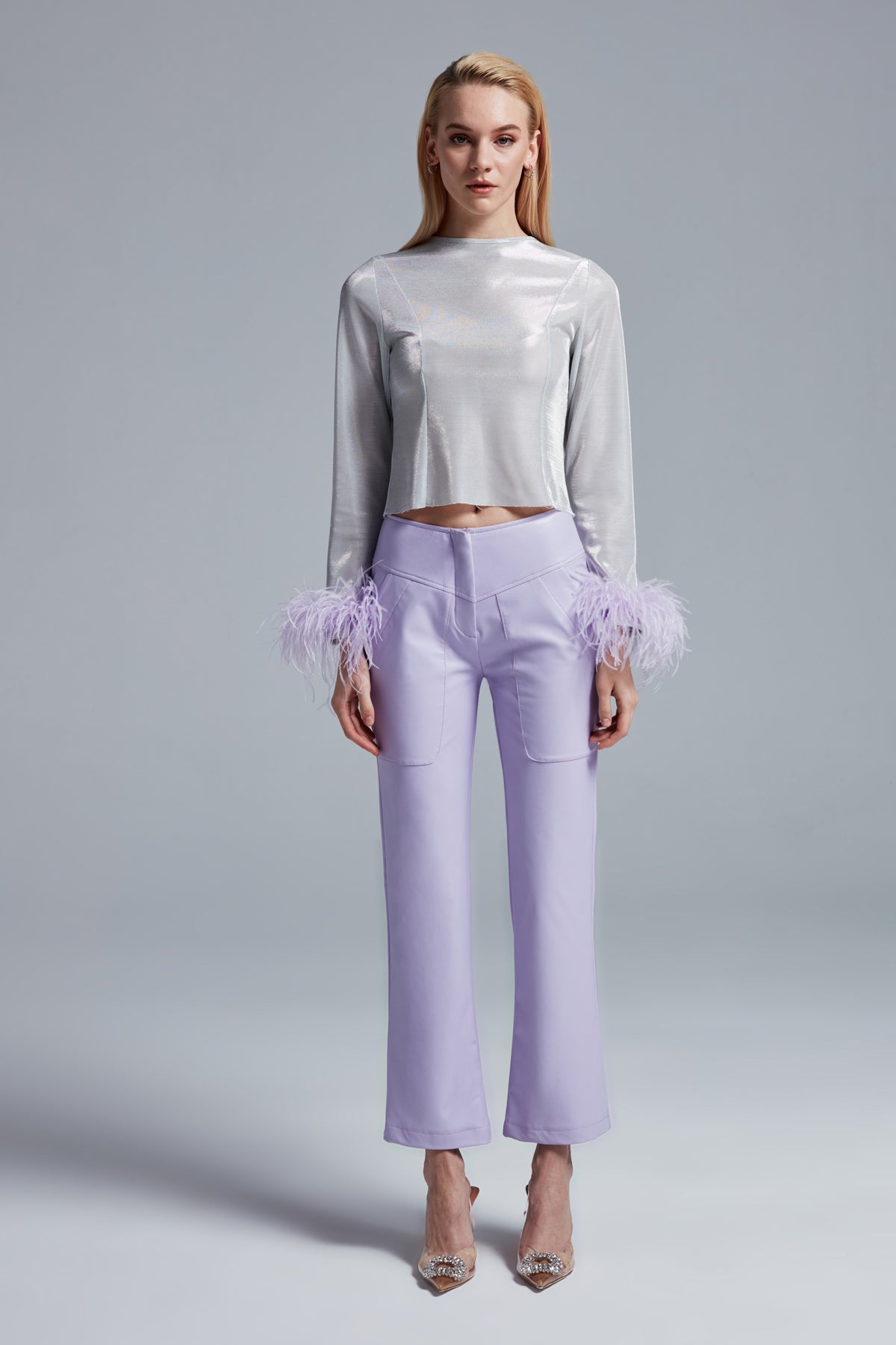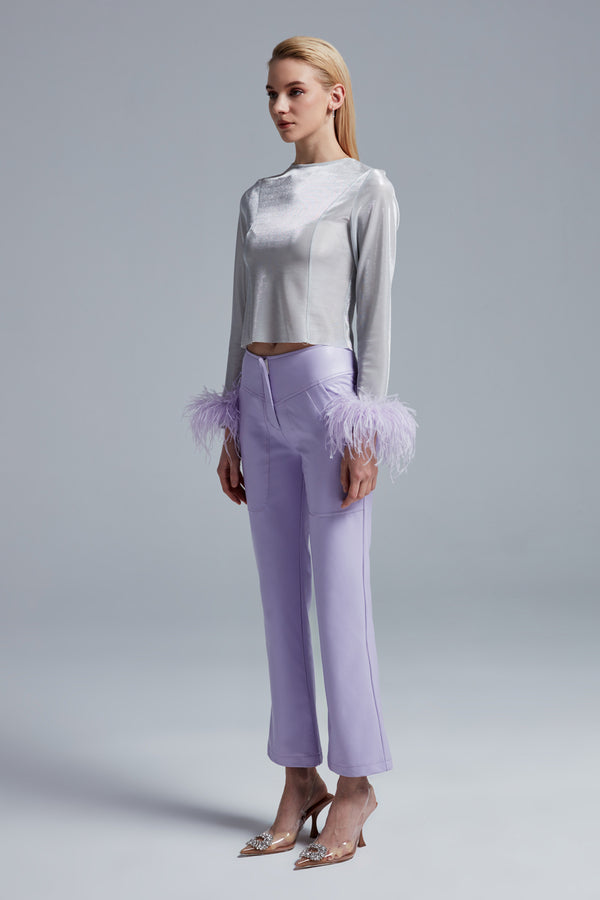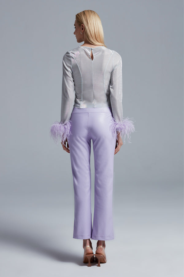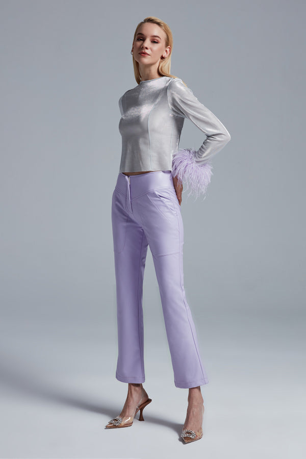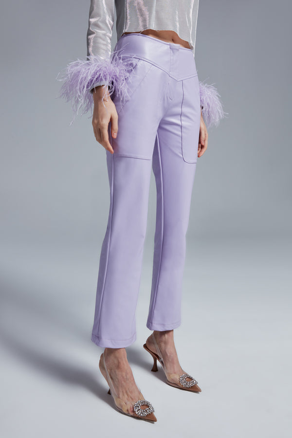Lilac Dahlia Parlak Vegan Deri Pantolon