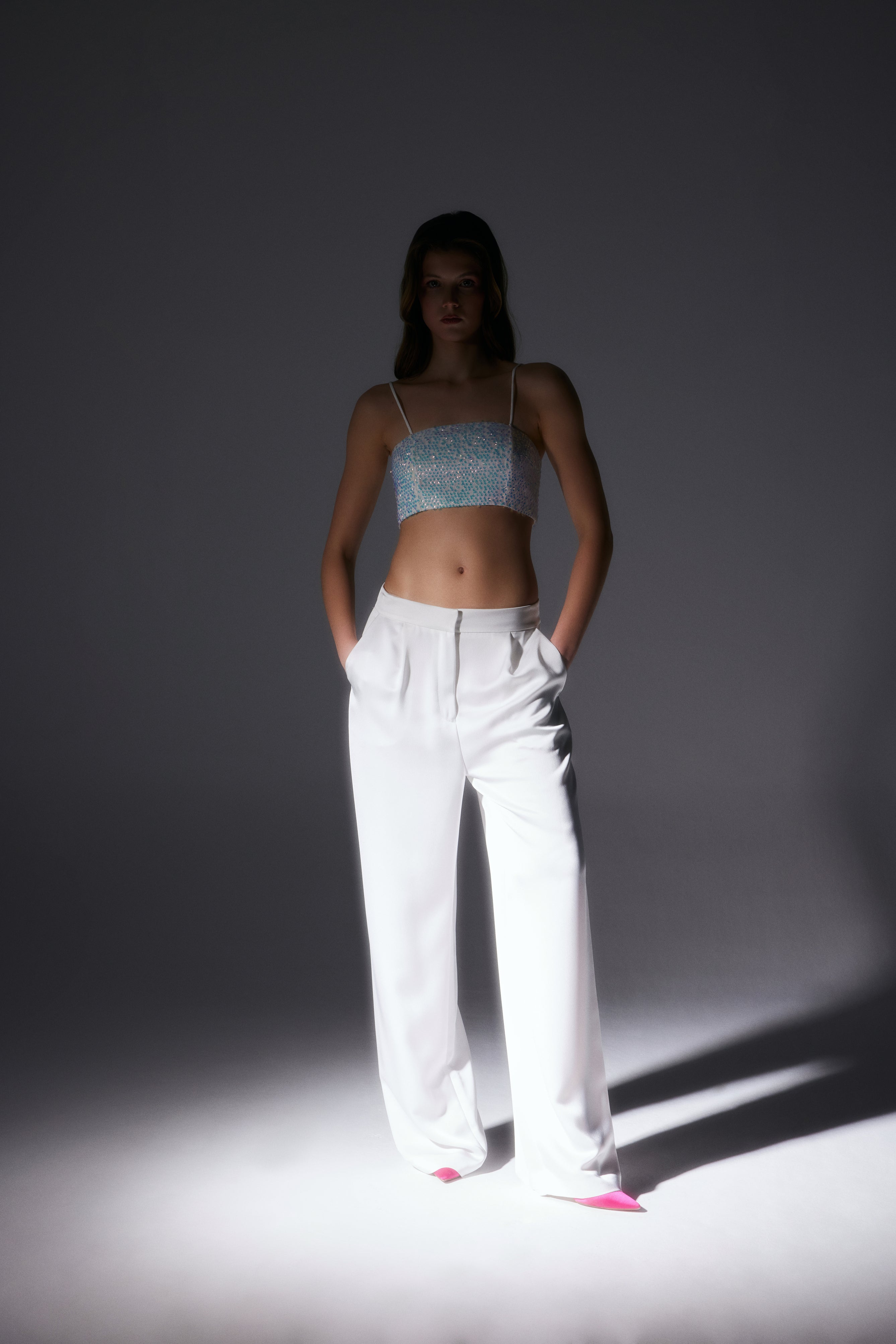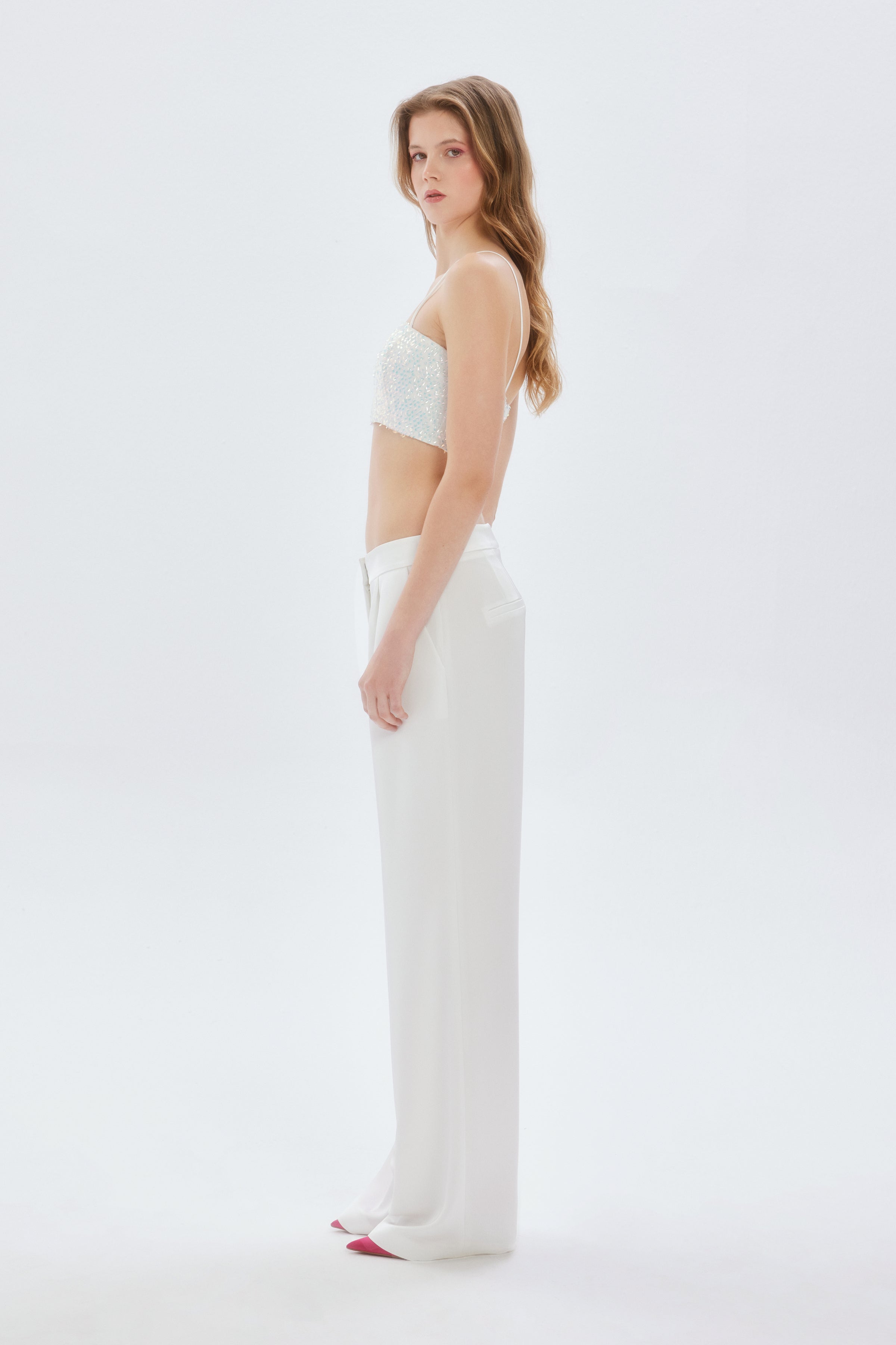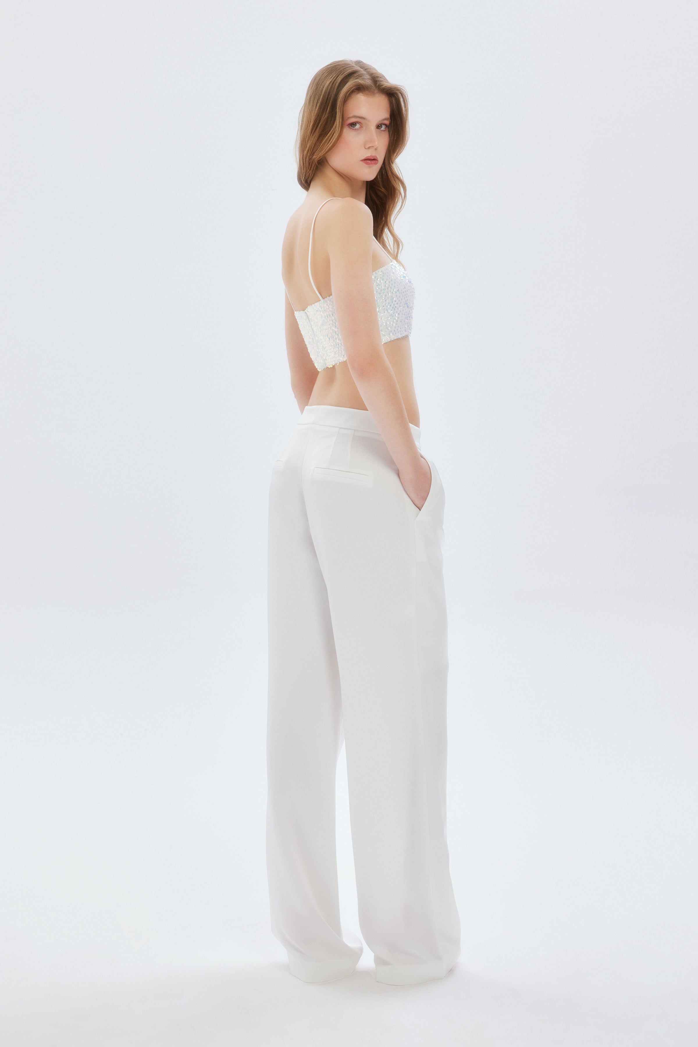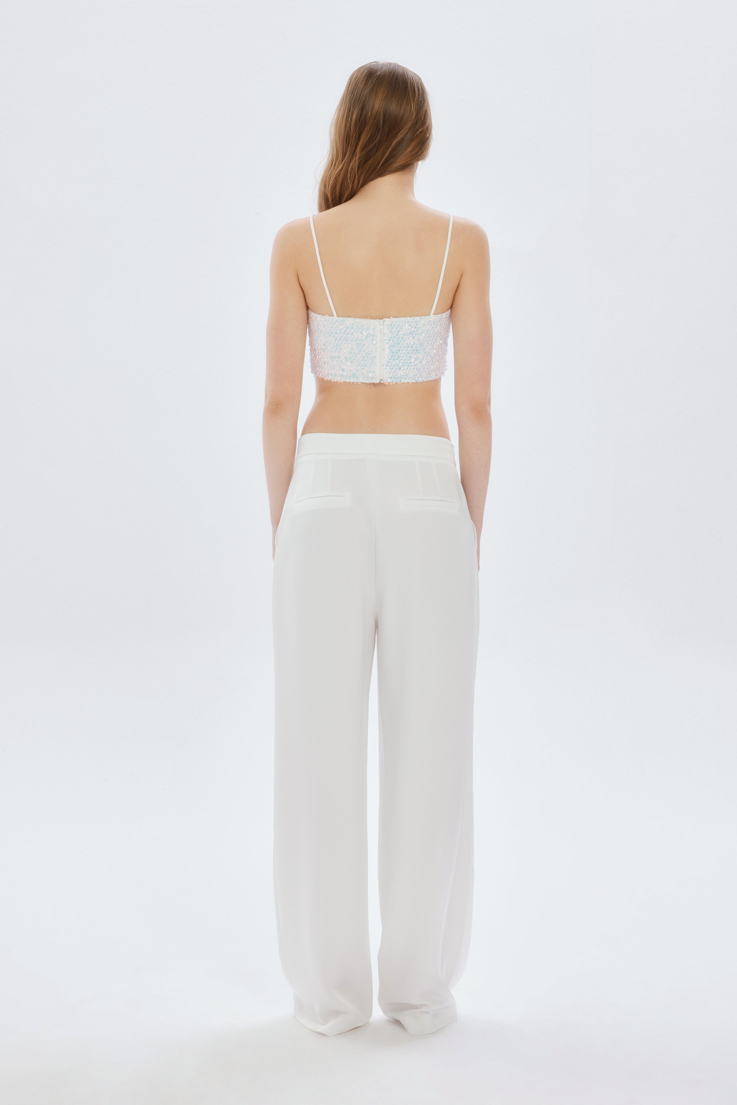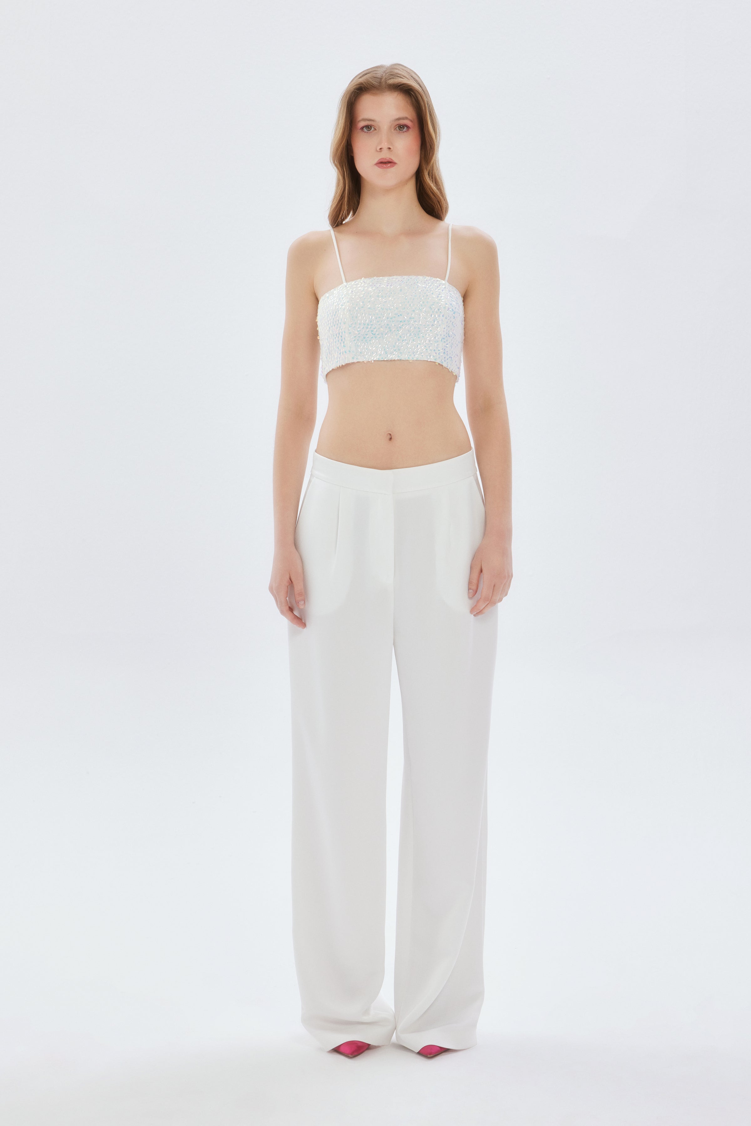 Bu payetli crop, hem şık pantolonlarla özel bir davet için kombinlenebilir hem de bir etekle günlük zarafeti yansıtabilir. İnce askıları sayesinde zarif bir duruş sergileyen askılı kısa bluz, aynı zamanda tarzınıza enerjik bir hava katacak. Lucerne beyaz payetli askılı crop, minimalist tasarımı ve etkileyici ışıltısıyla gardırobunuzun en özel parçası olmaya aday!