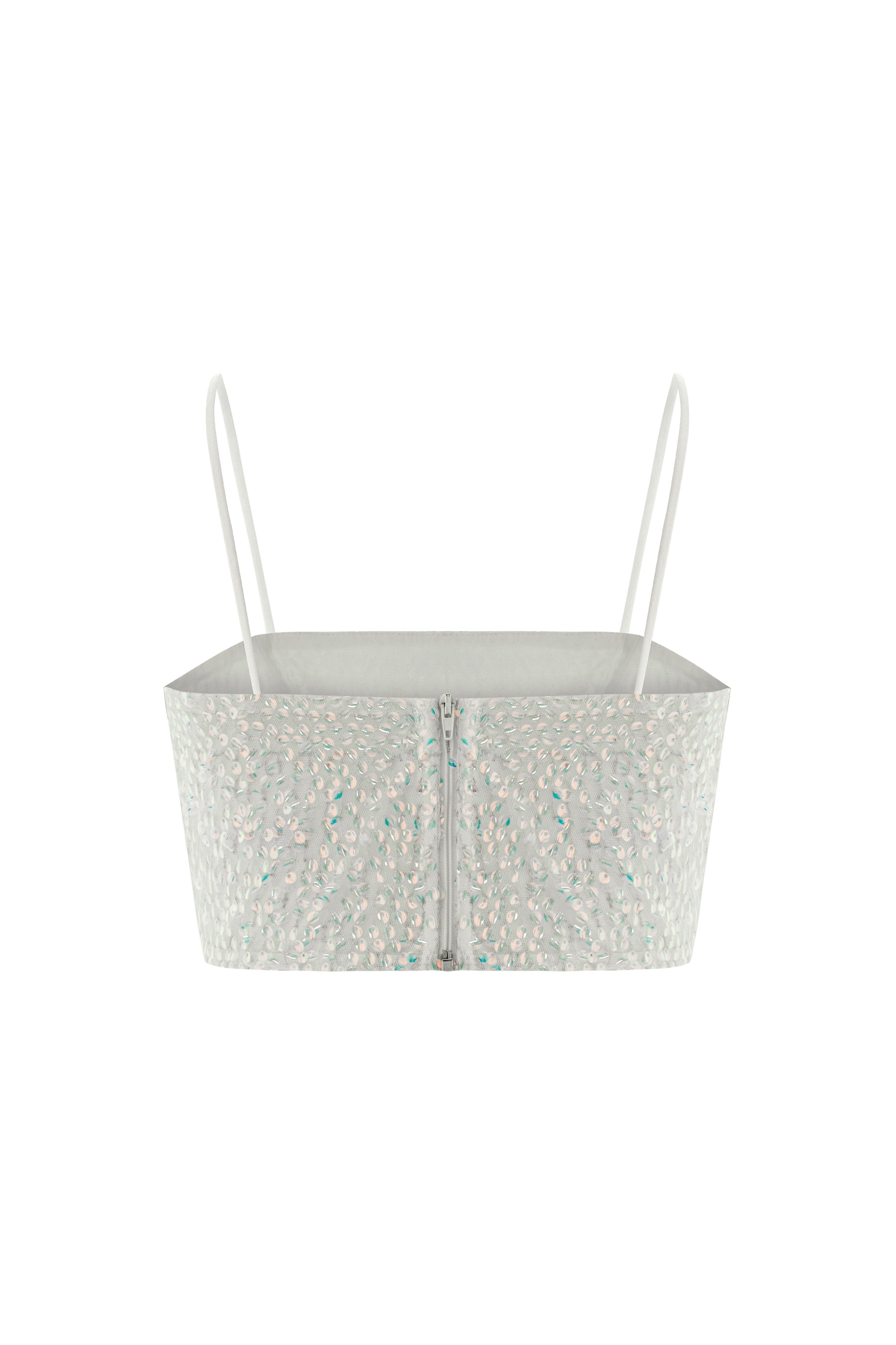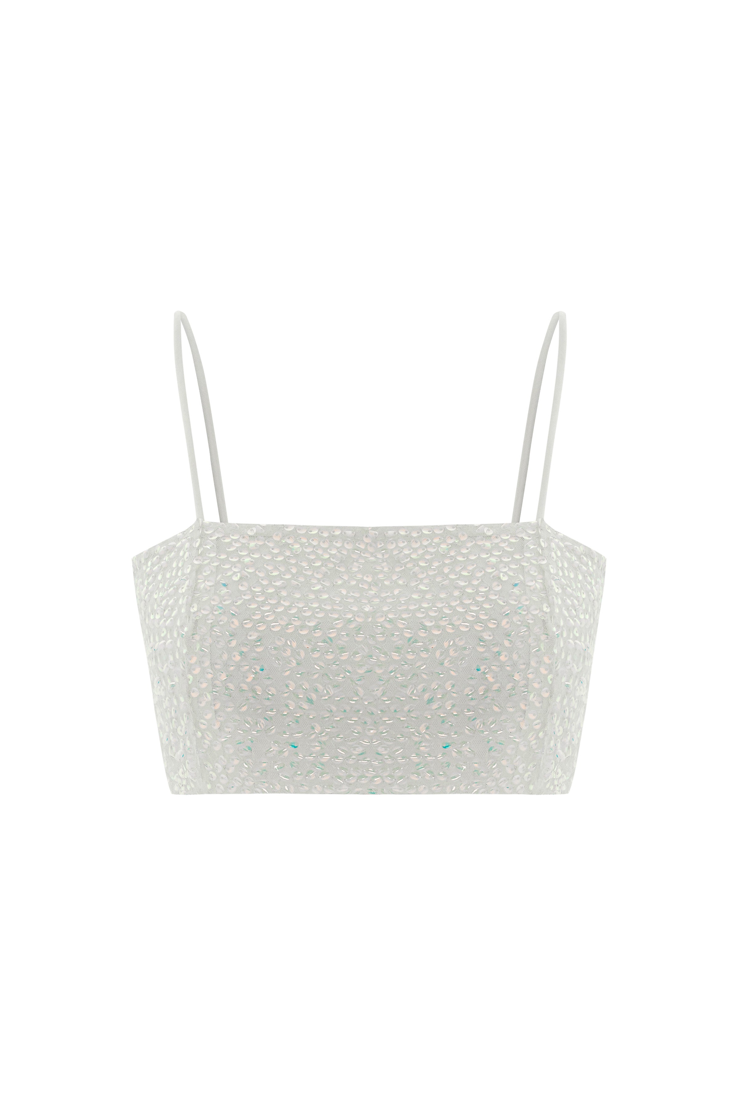 Lucerne Beyaz Payetli Askılı Crop Top