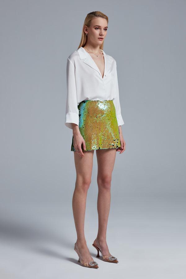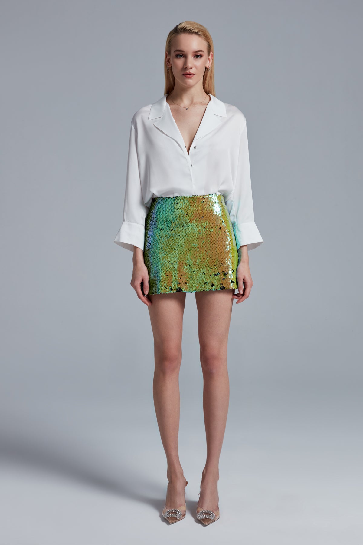 İpek Saten Astarlı Payet Kumaş Mini Etek
